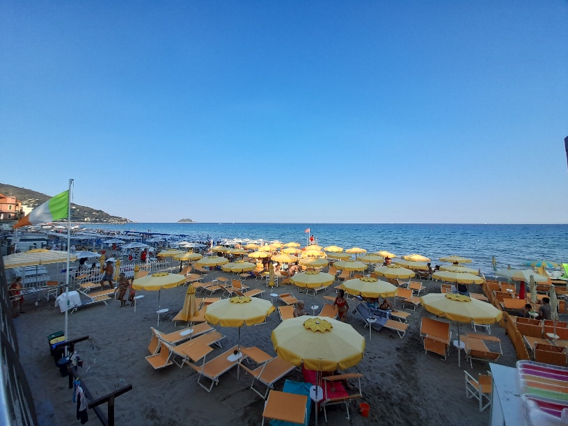 Es gibt freie Strände, oder sagen wir mal besser, kleine Strandabschnitte. An jedem Ortsende einen, so in etwa. Dort darf man Strandmuscheln aufbauen, Sonnenschirme pflanzen und Handtücher ausbreiten, wie man lustig ist und solange man Platz dazu findet.😉
