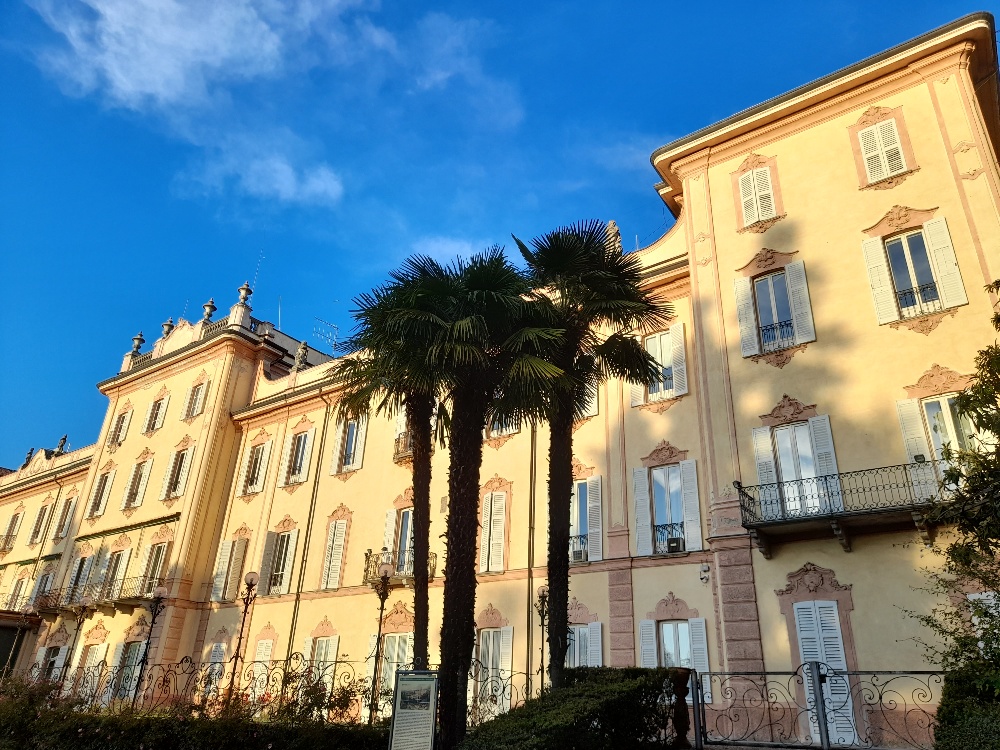 Erwartungsvoll sitze ich im Zug und genieße den Blick von der Eisenbahnbrücke auf unseren kleinen Ort, der sich in der nachmittäglichen Sonne von seiner romantischsten Seite zeigt. In Varese habe ich über eine halbe Stunde Zeit bis zum Veranstaltungsbeginn, folge der Verlockung eines offenstehenden Tores und betrete eine Parkanlage, in deren Zentrum ich staunend vor dem ehemaligen Grand Hotel Excelsior stehe. Wow! Dafür, dass es seine Glanzzeiten als Luxusabsteige vor über hundert Jahren hatte und schon seit den dreißiger Jahren des vergangenen Jahrhunderts in öffentlicher Hand ist (als Sitz der Provinzverwaltung und Präfektur), macht es eine prächtige Figur, findet ihr nicht? Wie hatte mir mein Mann, gebürtiger Varesiner, dieses touristische Kleinod all die Jahre vorenthalten können? (Er kannte es nicht oder war sich zumindest nicht bewusst, dass es ein ehemaliges Hotel und so schön anzuschauen ist.) Während ich die überraschende Entdeckung genieße und durch den dazugehörigen Park bummele, stelle ich fest, dass ich mittlerweile die einzige Spaziergängerin bin. Auch die hellen Kinderstimmen sind nicht mehr zu vernehmen, die ich kurz zuvor noch als beruhigendes Hintergrundgeräusch registriert hatte. Mir kommt in den Sinn, dass es – dem schönen Wetter zum Trotz, aber jahreszeitgemäβ – womöglich recht frühe Schlieβzeiten gibt und gehe in die Richtung, aus der ich glaube, gekommen zu sein. Mein Herz gerät aus dem Takt, als ich vor einem verschlossenen Tor stehe. Der Blick auf die Beschilderung lässt ausgerechnet die Öffnungszeiten im Ungewissen, sie sind fein säuberlich (für mich?) unkenntlich gemacht. Ich wähne mich schon bei „Versteckte Kamera“, bin ich mir doch sicher, hier vor kaum fünfzehn Minuten hindurchgegangen zu sein.