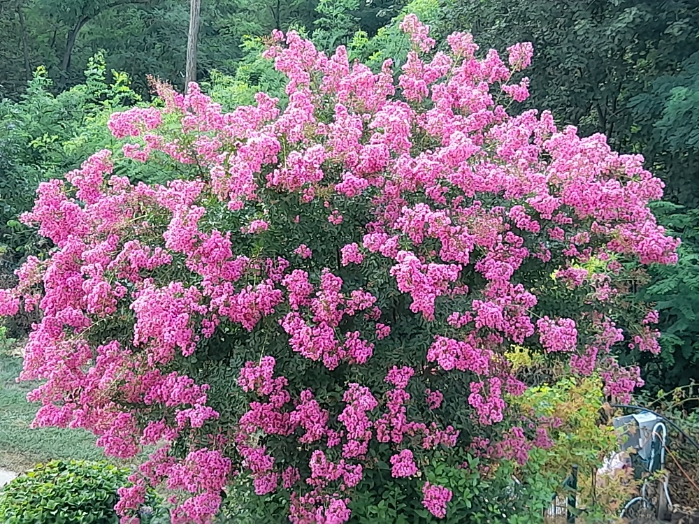 Von welcher Pflanze ich hier schwärme? Ende Juli beginnt die Zeit der Lagerströmie, auch als Kräuselmyrte oder Kreppmyrte bekannt. Ob es nun der Herkunft nach chinesische, indische oder japanische Gewächse sind, da müsst ihr einen Botaniker fragen. Das Prachtexemplar auf dem Titelbild wächst und gedeiht hier bei uns im norditalienischen Wohngebiet. Dem Gärtner, der sie dort gepflanzt hat, würde ich eine Ehrenurkunde verleihen, wenn ich ihn einmal träfe. Er hat uns direkt vorm Fenster einen atemberaubenden Anblick beschert. Den haben wir gleich mehrmals im Jahr, denn die Blüten im Sommer sind nur das Vorspiel. Man könnte sagen, der Baum blüht zweimal. Wenn es im Herbst langsam kühl wird, färben sich die sattgrünen Blätter erst gelb, dann orange, um schlussendlich ein feuerrotes Spektakel zu bieten, bevor sie die Bühne verlassen und sich auch die Lagerströmie in den Winterschlaf begibt. Aber ach, jetzt habe ich vorgegriffen. Im Herbst liefere ich gern den Beweis für die zweite farbenprächtige Show. Stay tuned!